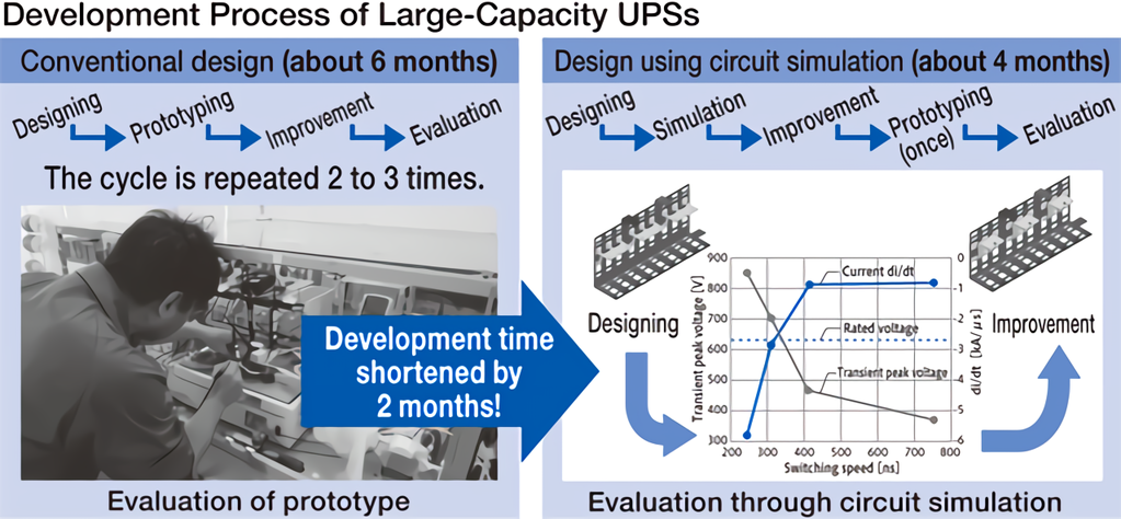 The development of inverters and uninterruptible power systems (UPS) typically involves prototyping for evaluation after circuit design. If the required performance was not satisfied, the causes of any insufficient specifications are investigated, and then another round of prototyping takes place to re-validate the specifications. This cycle used to be repeated two to three times.
