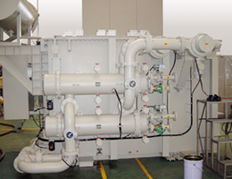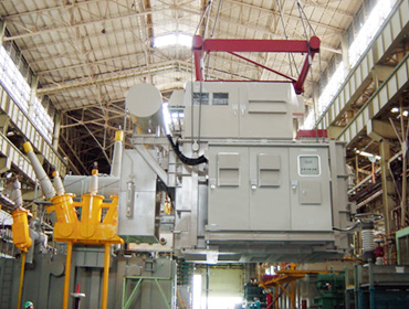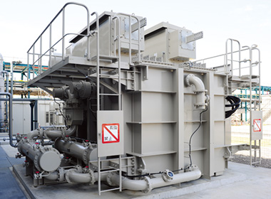Our large-current rectifier (trade name: S-Former) technology, typically used for aluminum electrolysis, has been employed in small to medium capacity devices to achieve high-reliability design.