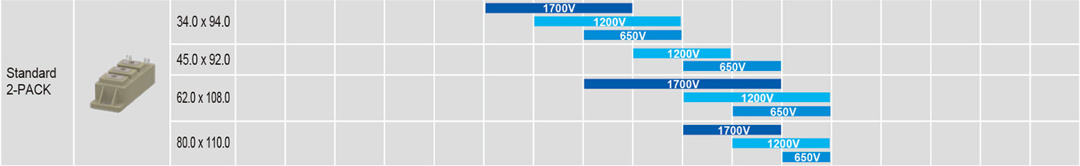 IGBT module X Series product lineup (including products under development) 650 V/1200 V/1700 V