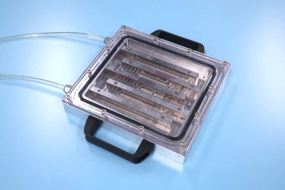 The team had an idea that might increase cooling performance while lowering costs, but there was no way to verify the approach they developed in the analysis.They were not confident that the water would flow through the metal frame as indicated in the analysis. To visualize the flow of water, the team built their own miniature model the size of a lunch box and repeatedly tested it.