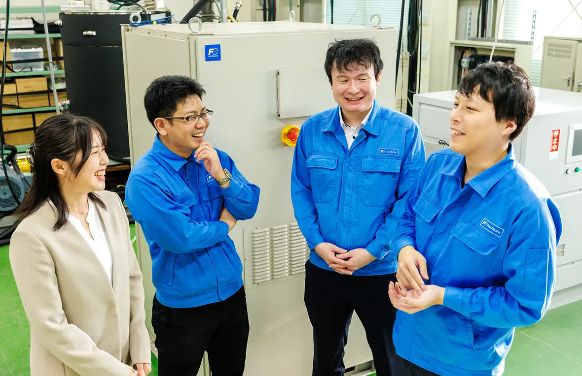 To address this issue, Fuji Electric has launched a new steam-generating heat pump (hereinafter referred to as a “heat pump”). We spoke to four employees about the appeal of heat pumps, as well as their ongoing projects.