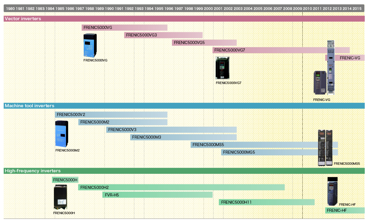 An inverter is composed with life-limited electronic parts such as electrolytic capacitors and fans. Since these parts have their life spans, some parts of old-type AC Drives (Low voltage) may have been ended.