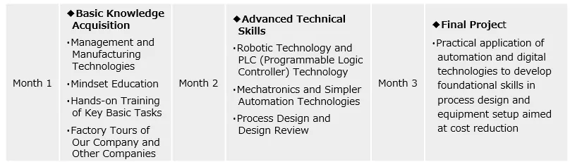 Step-by-step training for production engineers to develop talent that can work globally, both domestically and overseas.